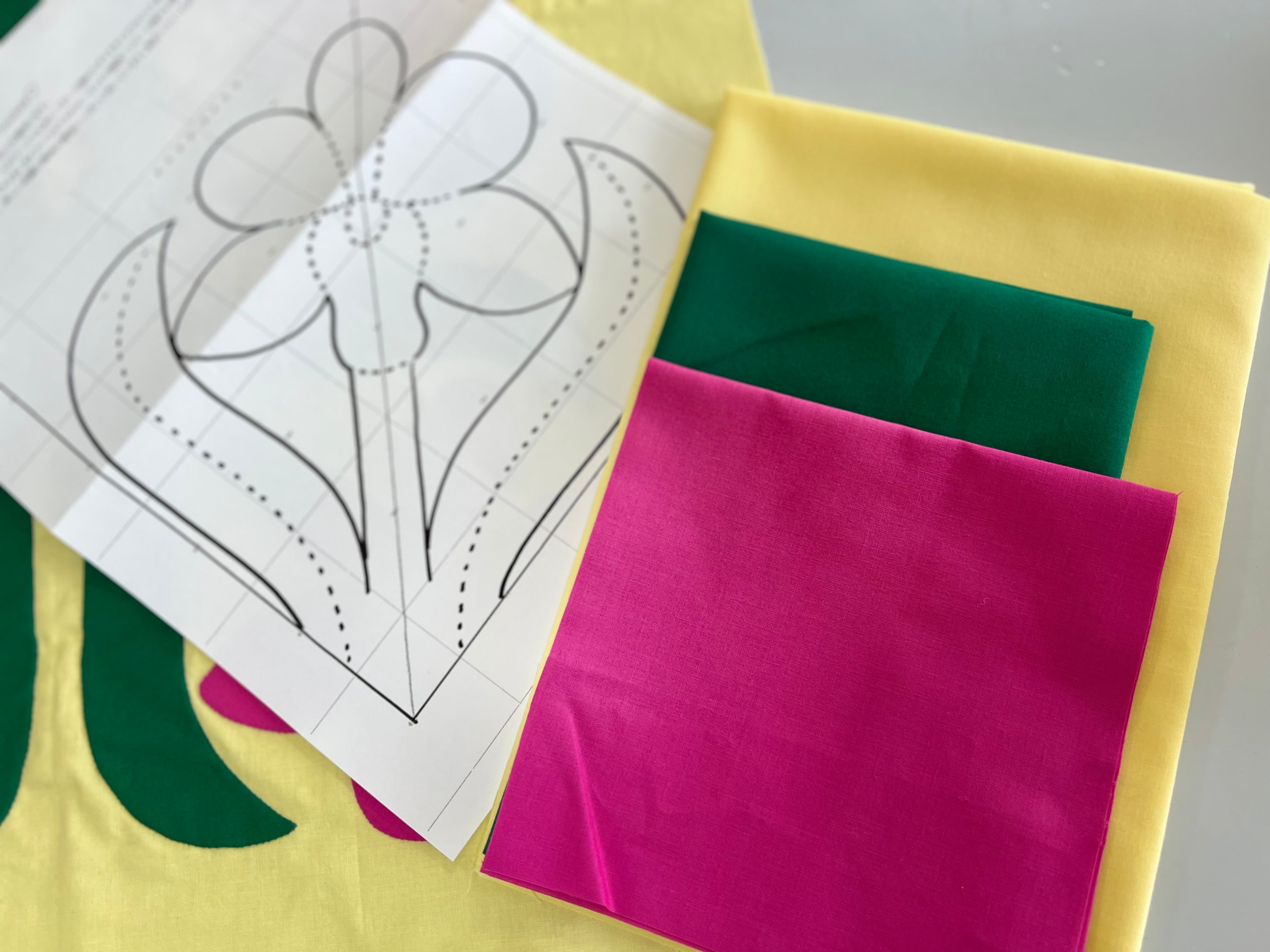 生地3枚、カット用不織布、型紙